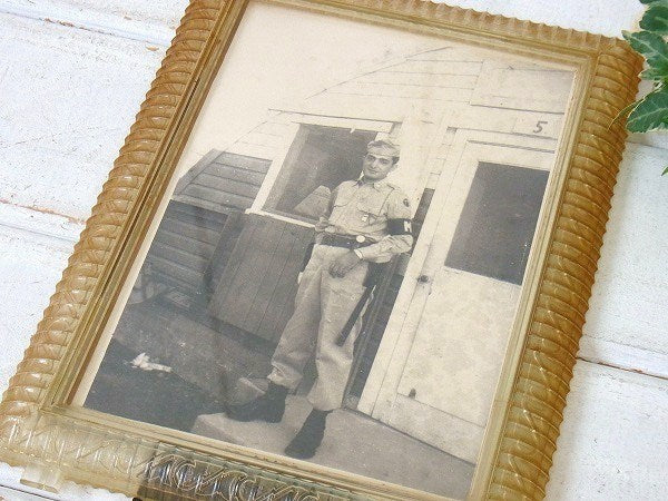 モノクロ写真入り・プラスティック製・アンティーク・OLDフォトフレーム/額縁/写真立て USA
