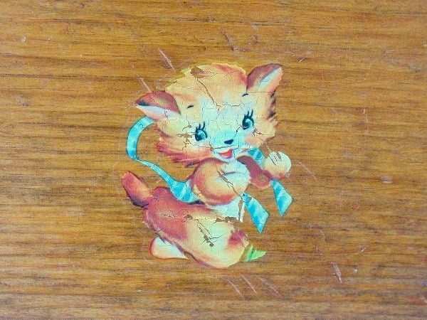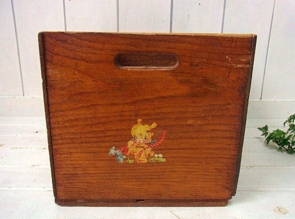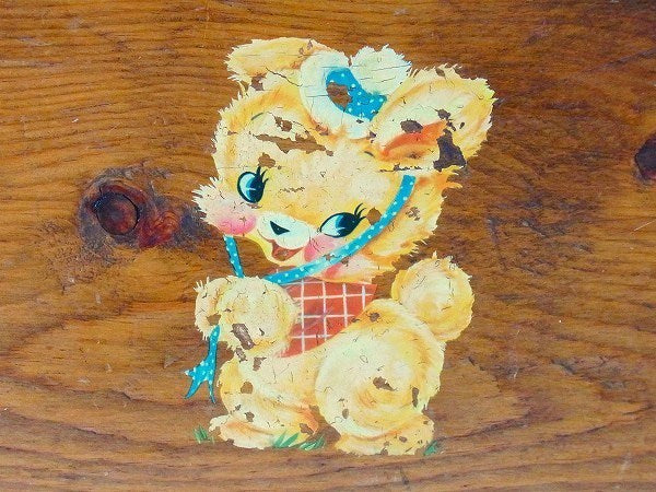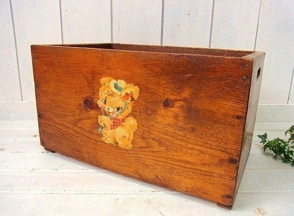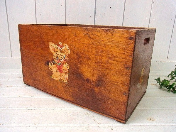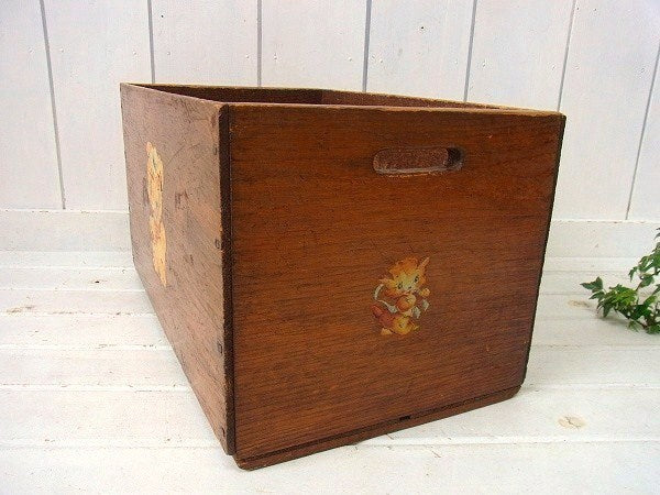 レトロなクマ&ネコ柄・アンティーク・木箱/ウッドボックス USA