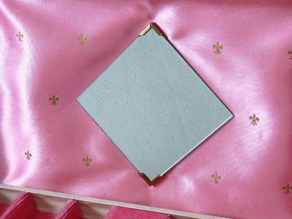 お色はアイボリー色、内側はピンク色のサテン生地&ベルベット素材です。