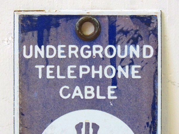 【UNDERGROUND TELEPHONE CABLE BELL SYSTEM DO NOT DISTURB(地下電話ケーブル注意)】の文字と、ベルシステムのロゴマークが入っております。