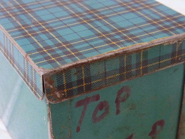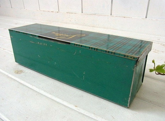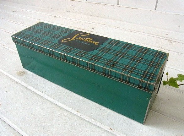 【Sportsman】モスグリーン・タータンチェック柄・ヴィンテージ・ティン缶/ブリキ缶 USA