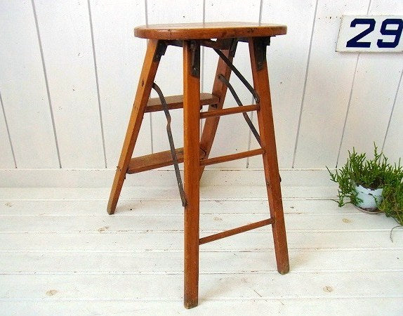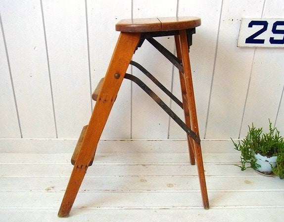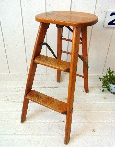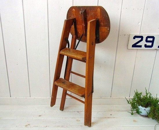 古い木製のアンティーク・ステップラダー/脚立 USA