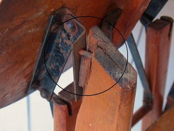 経年による多少のヨゴレ・スレ・キズ・金具サビ・天板中央の割れ・イタミ箇所・天板に水色のペンキ跡・ステップ上部左サイドに金具の浮き箇所等ございます(画像参照)。