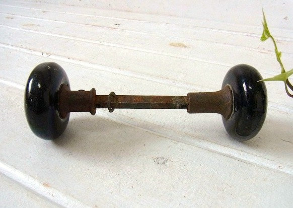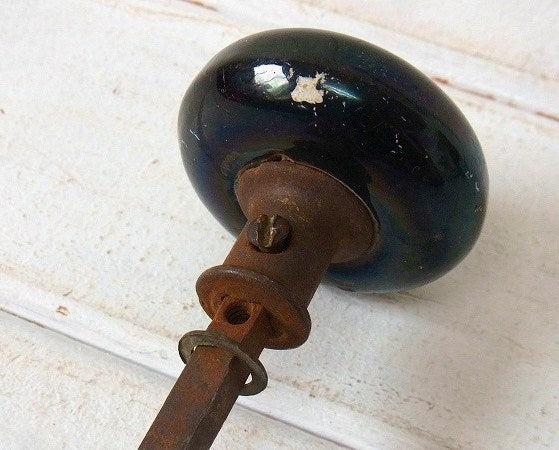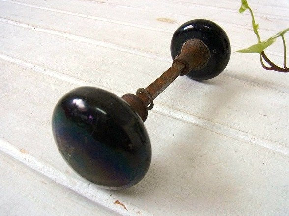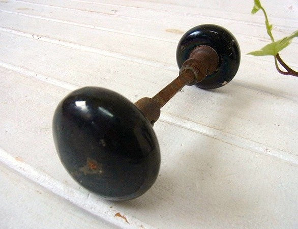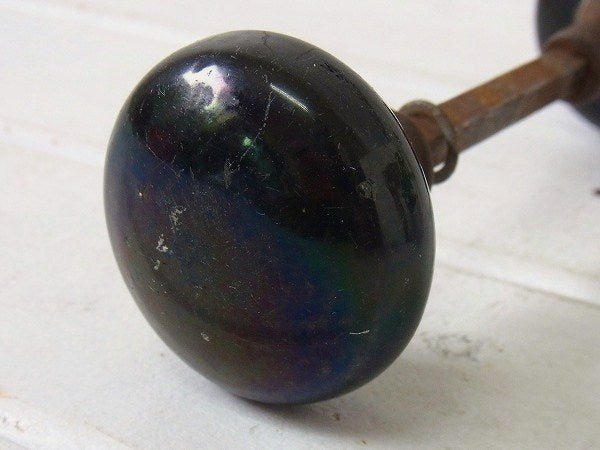 黒いガラス製×アイアン製・アンティーク・ドアノブ USA