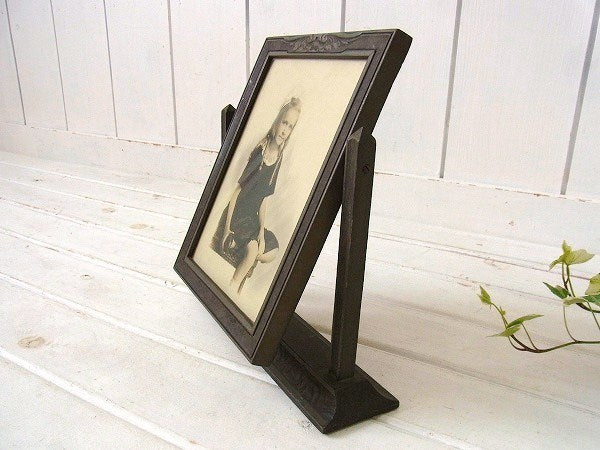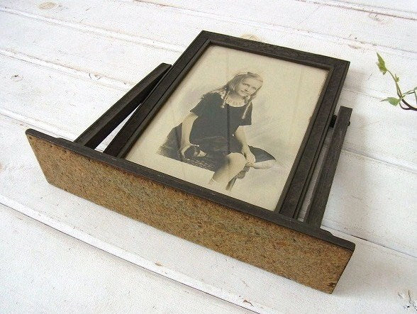 アメリカで見つけました・・古いモノクロ写真入りの回転式・木製・アンティーク・フォトフレーム(額縁)です。