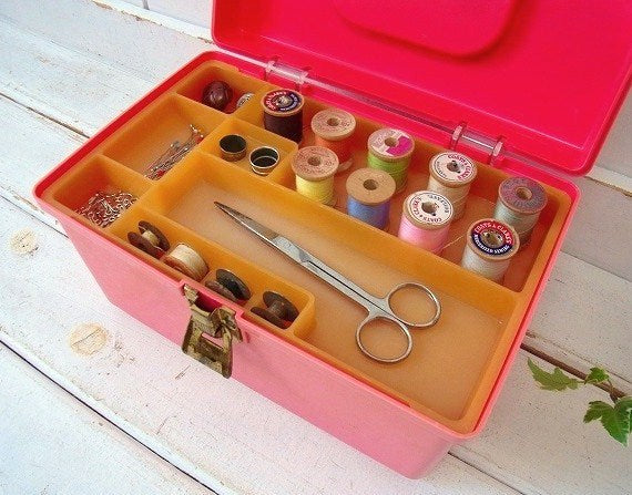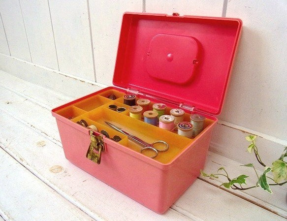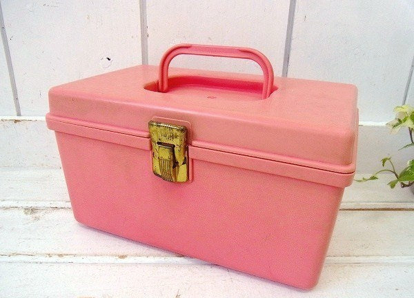 【WILSON】ピンク色・2段式・ヴィンテージ・ソーイングボックス/裁縫箱/手芸 USA