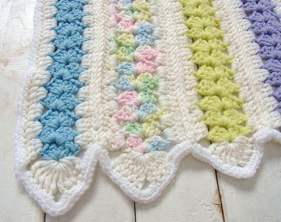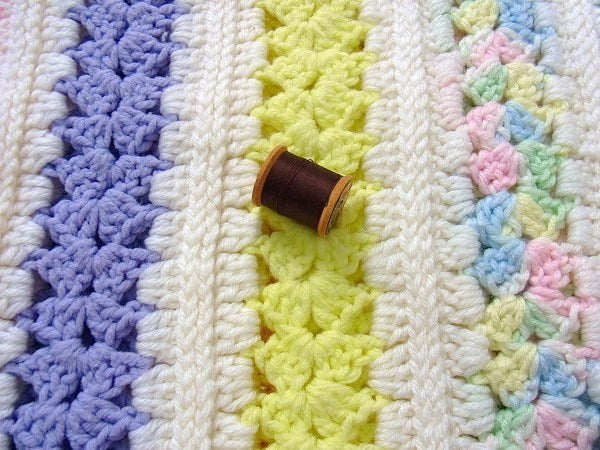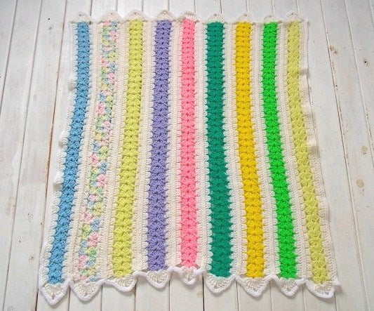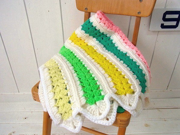 8色のカラフルなヴィンテージ・ニットブランケット/ベビービウランケット/ひざ掛け USA