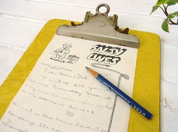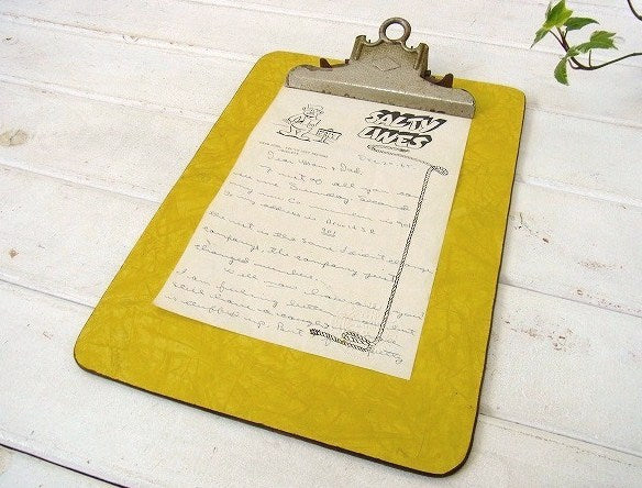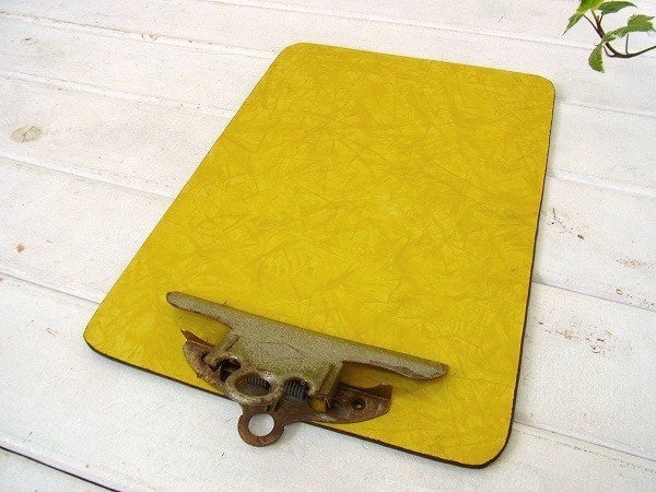 アメリカで見つけました・・イエローのヴィンテージ・クリップボード(バインダー)です。