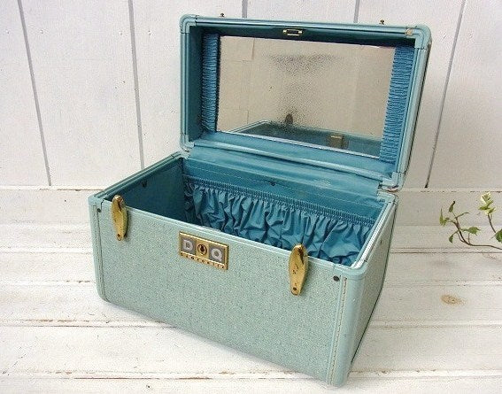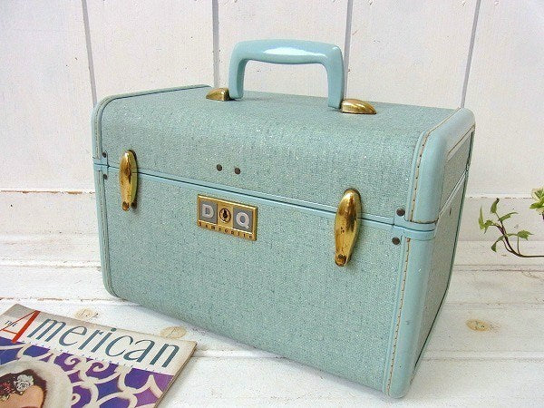 【Samsonite】サムソナイト・ターコイズブルー色・ヴィンテージ・メイクボックス/コスメボックス