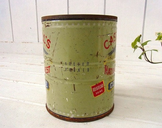 【CASWELL'S】若草色のヴィンテージ・コーヒー缶/ティン缶 USA