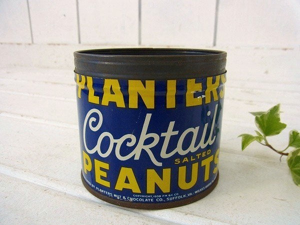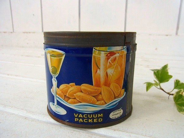 【PLANTERS】カクテル柄・ピーナッツの小さなヴィンテージ・ティン缶/ブリキ缶 USA