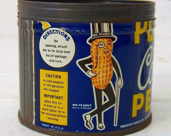アメリカで見つけました・・ナッツでお馴染み『PLANTERS(プランターズ)』のヴィンテージ・ティン缶です。