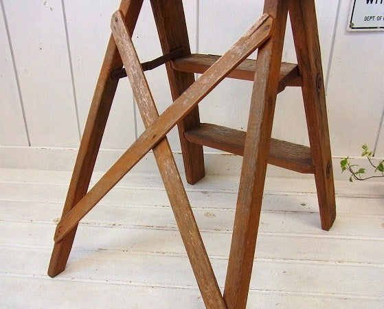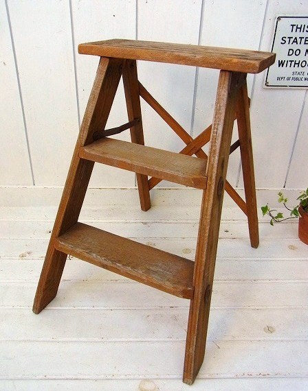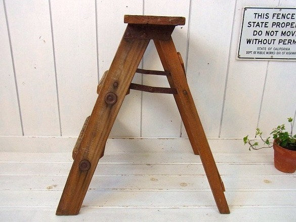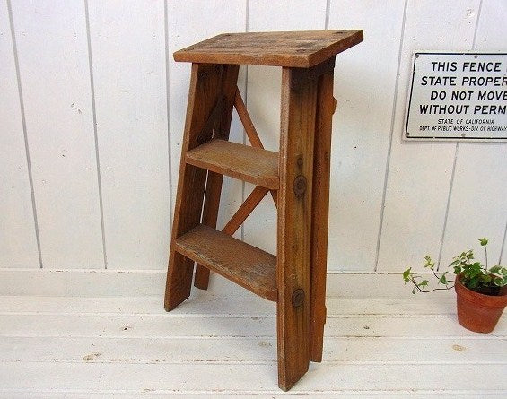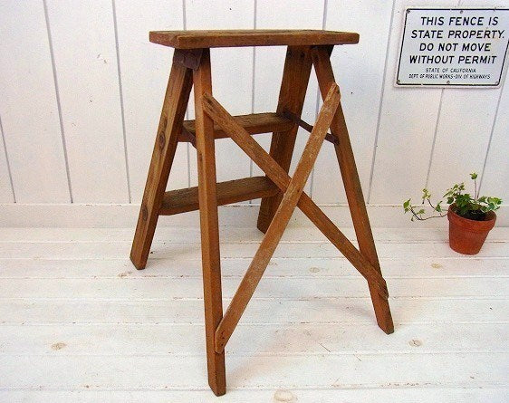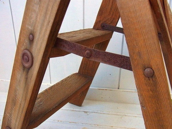 シャビーな木製・アンティーク・ステップラダー/脚立 USA