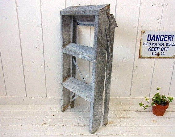 ミドルサイズのアルミ製・ヴィンテージ・ステップラダー/脚立 USA
