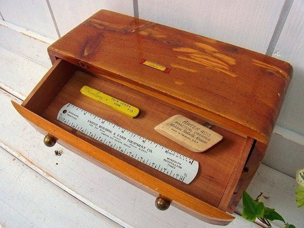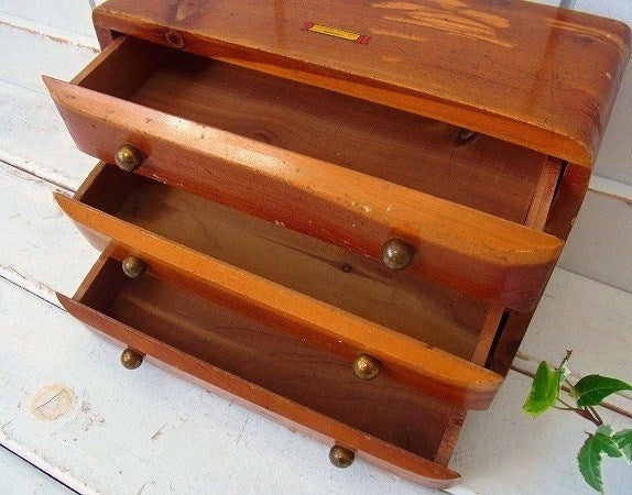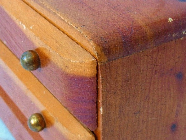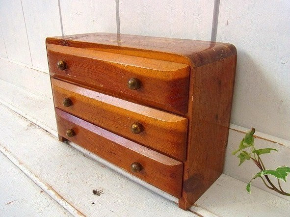 木製の小さなアンティーク・3段・卓上チェスト/引き出し USA
