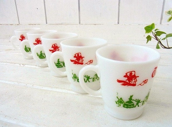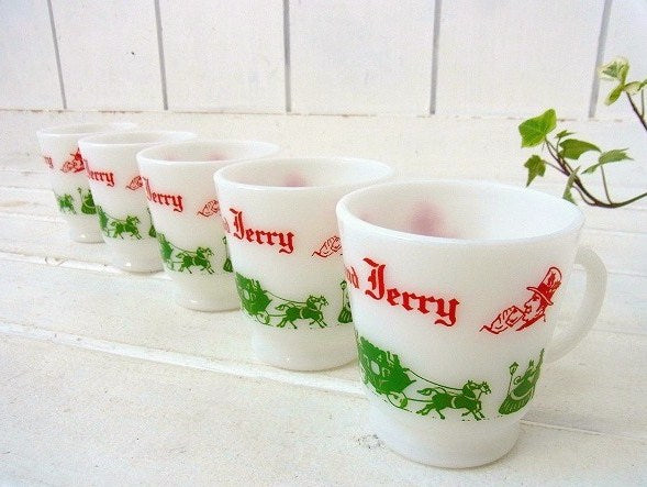 アメリカ西海岸、サンフランシスコで見つけました・・『ヘーゼルアトラス(HAZEL ATLAS)社』の、クリスマス・エッグノッグ【Tom & Jerry】ヴィンテージ・マグカップ・5脚セットです。