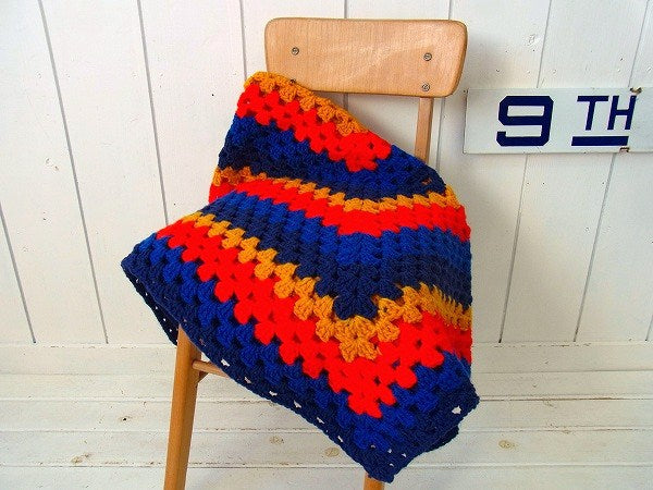 ハンドメイドのニットブランケット/ひざ掛け USA