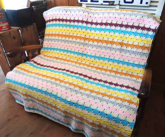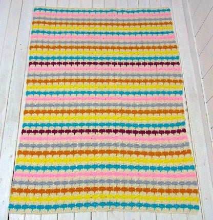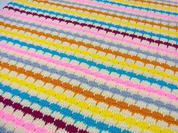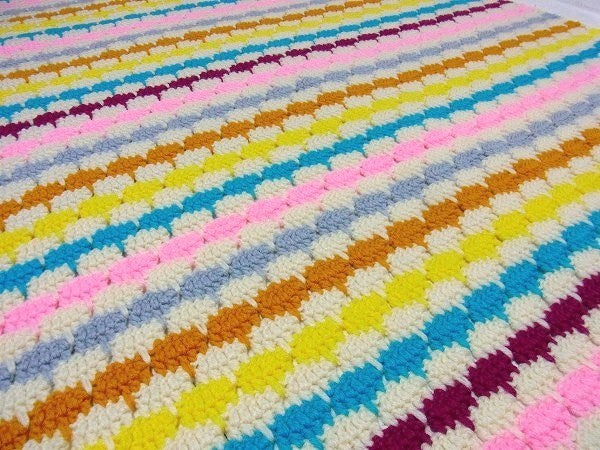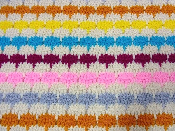 カラフルポップな手編み・ヴィンテージ・ニットブランケット/大判 USA