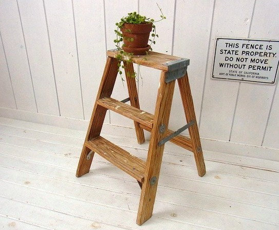 アメリカで見つけました・・白いペンキの付いた木製・ヴィンテージ・ステップラダー(脚立・踏み台)です。