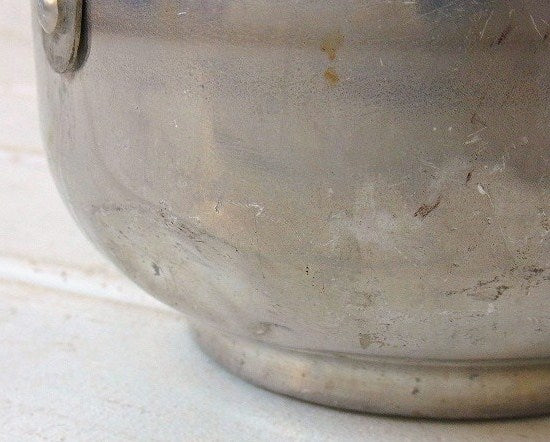 経年による多少のヨゴレ・スリキズ・ヘコミ箇所・ボトム数箇所に極小穴がございます。