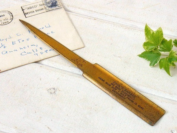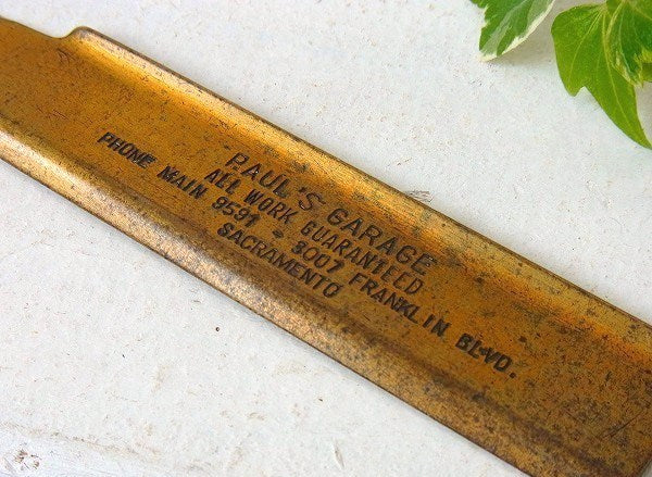 アメリカ西海岸・カリフォルニアでみつけました・・『PAUL'S GARAGE』の真鍮製・ノベルティ・ヴィンテージ・ペーパーナイフ(レターオープナー)です。