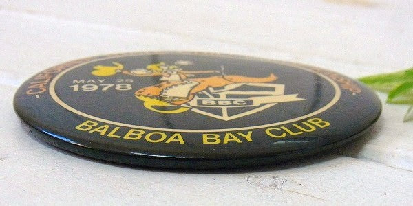 アメリカで見つけました・・『CALIFORNIA STATE CHILI CHAMPIONSHIP 1978 MAY 25 BBC BALBOA BAY CLUB』の大きなヴィンテージ・缶バッジです。