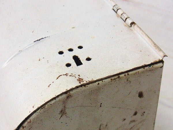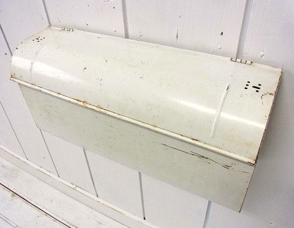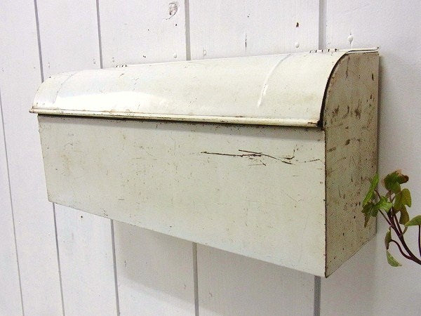 アメリカで見つけました・・白色のメタル製・横型・ヴィンテージ・メールボックスです。