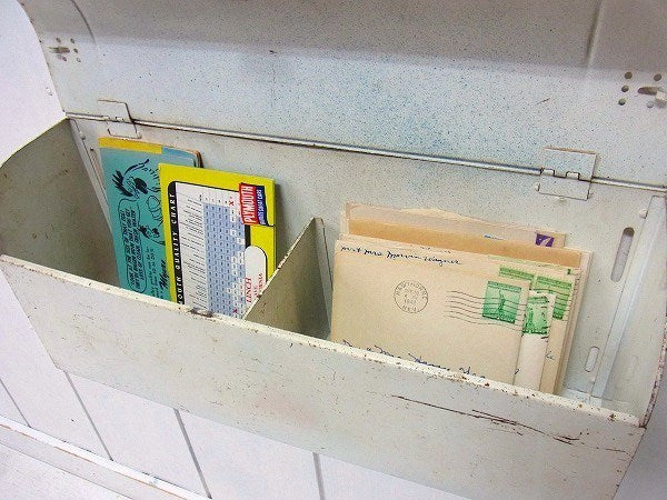 白色のシャビーな横型ヴィンテージ・メールボックス/ポスト/ウォールシェルフ USA