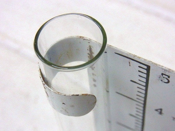 スタンド式の目盛付きブリキプレートに、ガラス製の試験管が付いております。