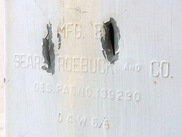 取っ手下に【U.S MAIL APPROVED BY THE POSTMASTER-GENERAL】、背面に【MFG. BY SEARS ROEBUCK AND CO. DES. PAT. NO. 199290 04W66】とエンボス文字が入っています。