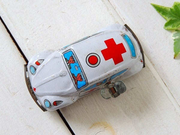 アンティーク&ビンテージ “ブリキ製”のフォルクスワーゲン ビートル/救急車(ゼンマイ付き)です。MADE IN JAPAN