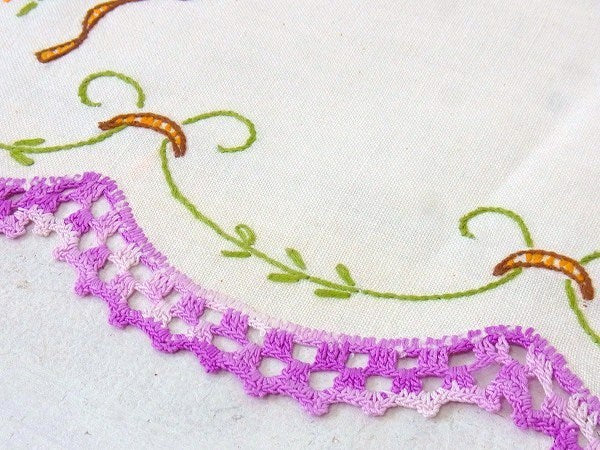 フラワーバスケット柄・デッドストック・クロッシェレース・アンティーク・刺繍ドイリー USA