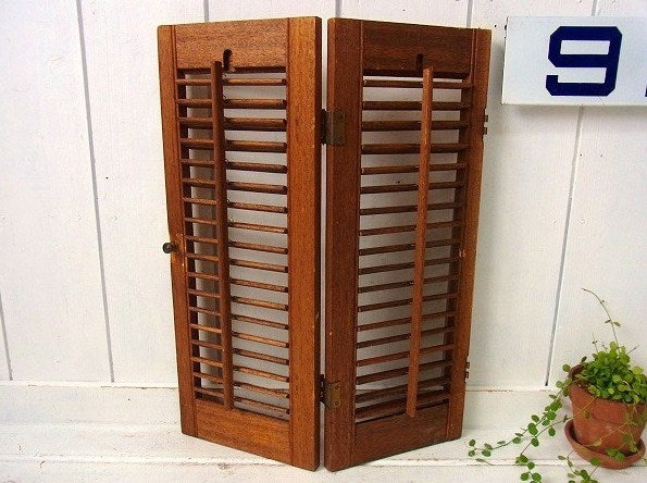 USA!木製のシャビーなアンティーク・ルーバー/ヴォレー/ウッドシャッター/建具