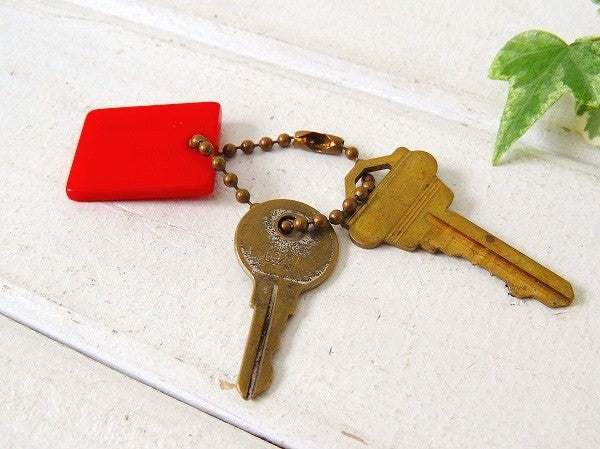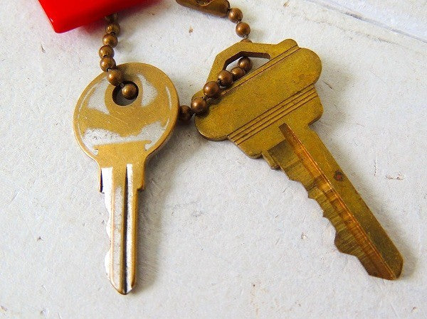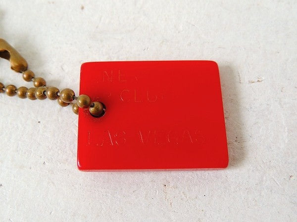 USA ビンテージ 老舗ラスベガス/NEVADA CLUB 赤色 キーホルダー+オールド ボールチェーン&真鍮製の古鍵 2本付きです。