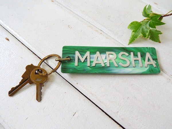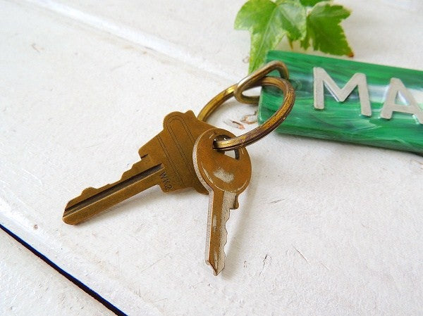 【MARSHA】ネーム入り/ビンテージキーホルダー・真鍮製キー・鍵2本付き・US
