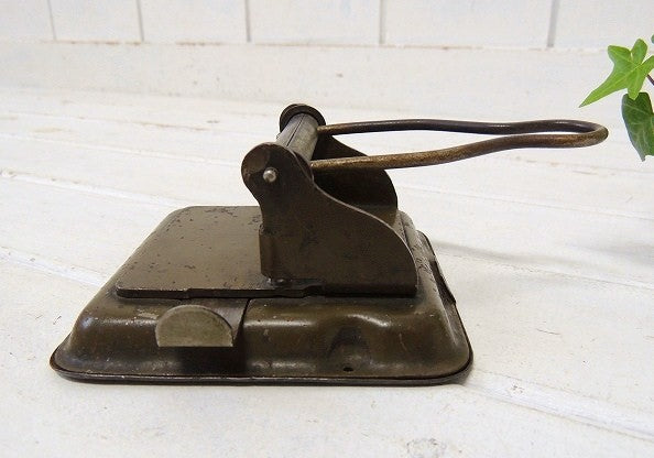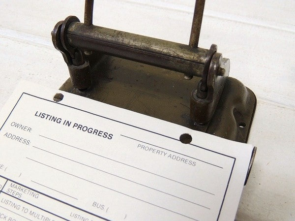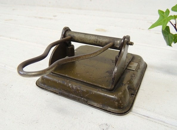 USA!カーキ色のメタル製・2つ穴・アンティーク・ペーパーパンチ/穴あけパンチ