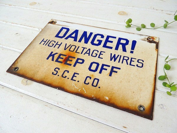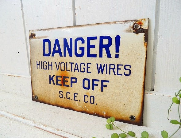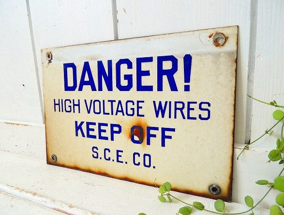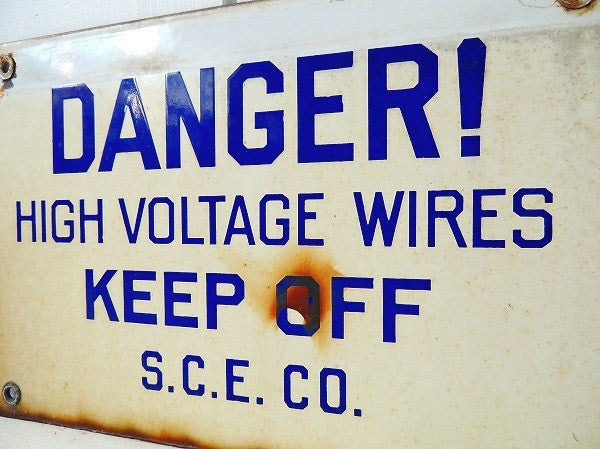 両面に【DANGER! HIGH VOLTAGE WIRES KEEP OFF S.C.E. CO.】と文字が入っております。