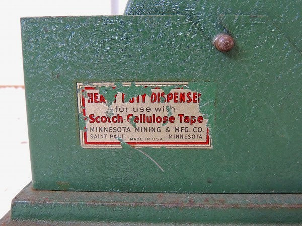 サイドに【HEAVY DUTY DISPENSER for use with Scotch Cellulose Tape MINNESOTA MINING&MFG. CO. ST.PAUL MINNESOTA MADE IN U.S.A.】とデカール(ラベル)が付いております。