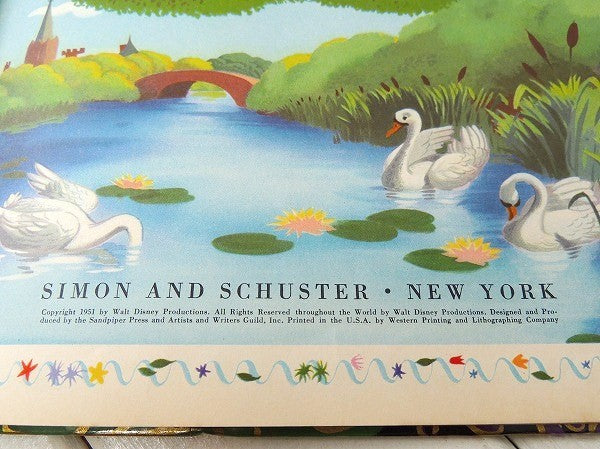 アメリカで見つけました・・、1951年に公開されたディズニーのアニメーション映画『ふしぎの国のアリス(Alice in Wonderland)』の初版・ヴィンテージ・絵本です。
