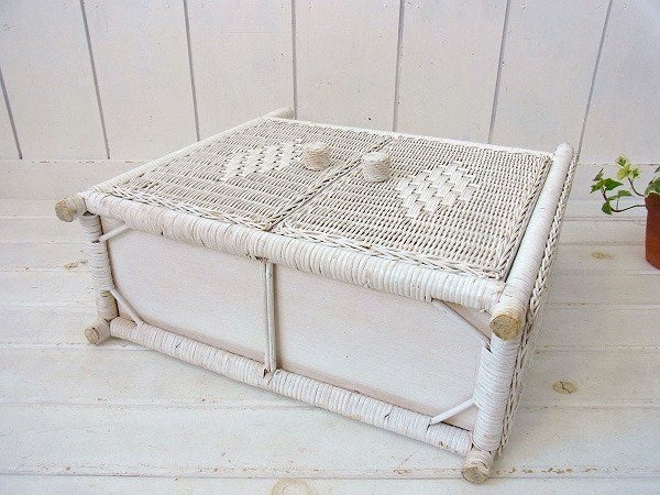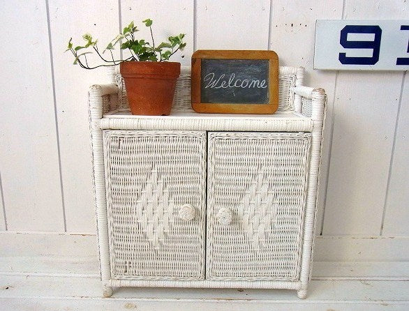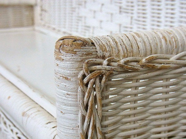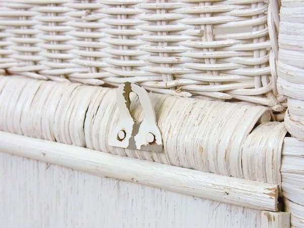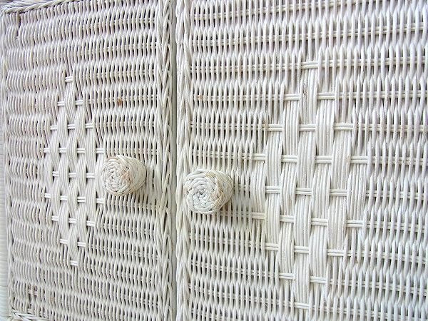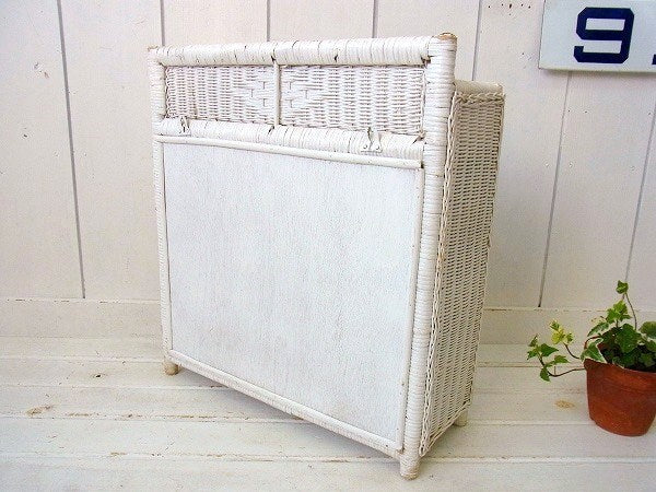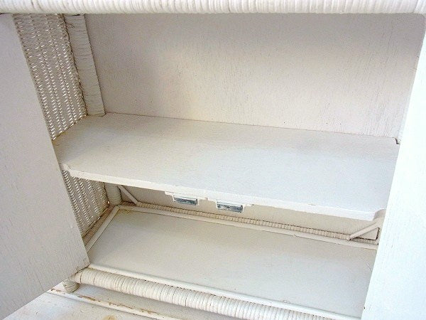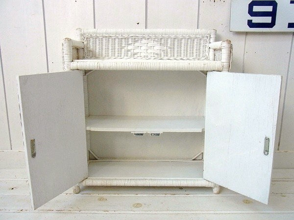 扉付き・白色のシャビーなアンティーク・ウィッカーシェルフ/飾り棚 USA