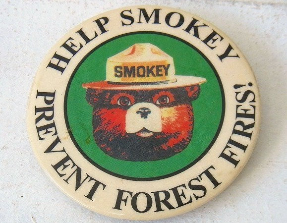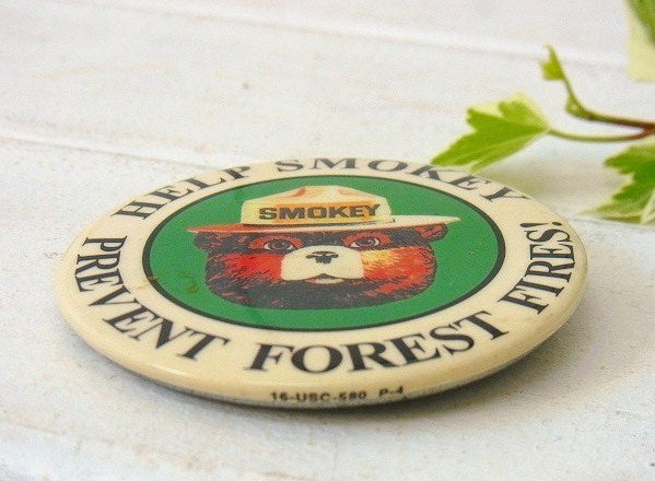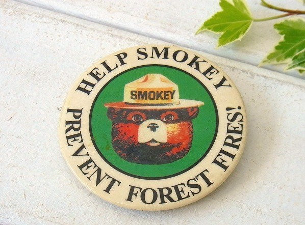 【スモーキーベア/熊】ヴィンテージ・缶バッジ/USA/森林火災防止のキャラクター