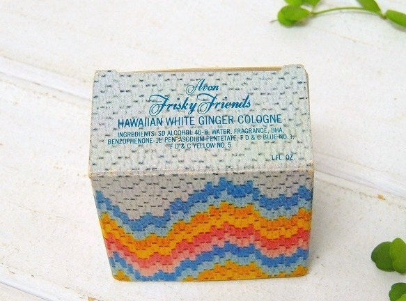 箱に【AVON FriskyFriends/HAWAIIAN WHITE GINGER COLOGNE 】とございます。