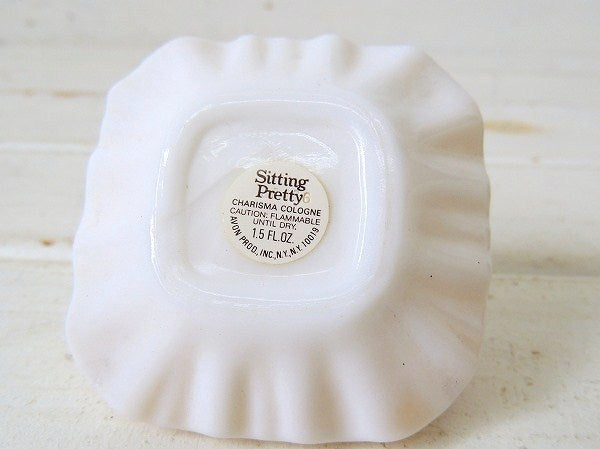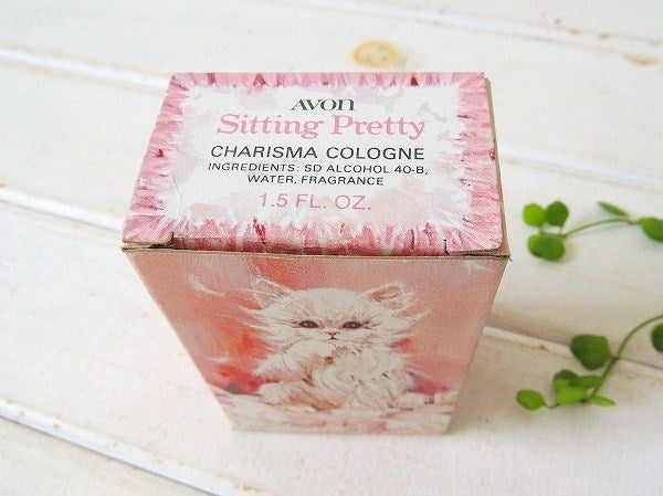 アメリカで見つけました・・クッションの上に座っている可愛いネコちゃんの『AVON(エイボン)社』のデッドストック箱入り・アンティーク・コロンボトル【Sitting Pretty CHARISMA COLOGNE】です。