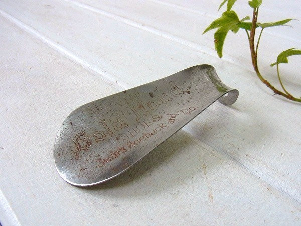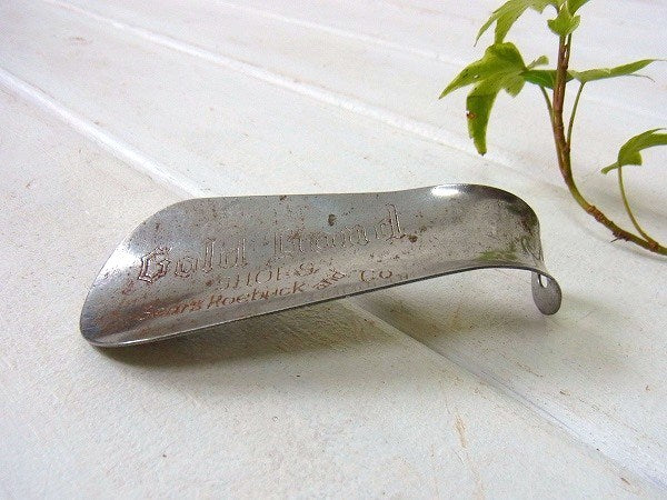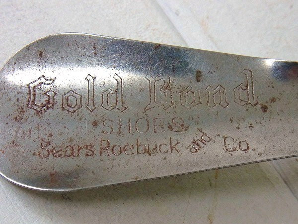 アメリカ西海岸(カリフォルニア)でみつけました・・アメリカの老舗・大型デパート『SEARS(シアーズ)』のオリジナル・シューズブランド【Gold Bond SHOES(ゴールド ボンド・シューズ】の、ノベルティ(販促品)・スチール製・ヴィンテージ・靴べら(シューホーン)です。