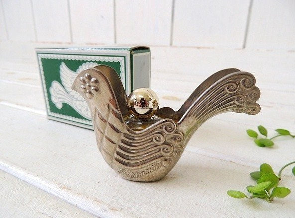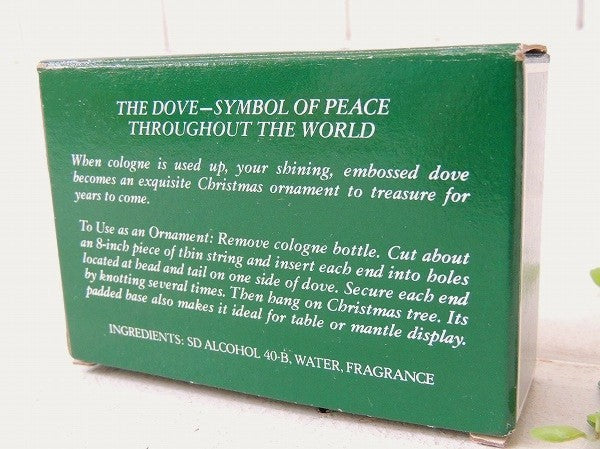 アメリカで見つけました・・幸せを運ぶ鳥の形をしたクリスマスコレクション1976's/香水瓶『AVON(エイボン)社』の箱入り・アンティーク・コロンボトル・ガラス瓶【Silver Dove Ornament/OCCUR!COLOGNE】です。