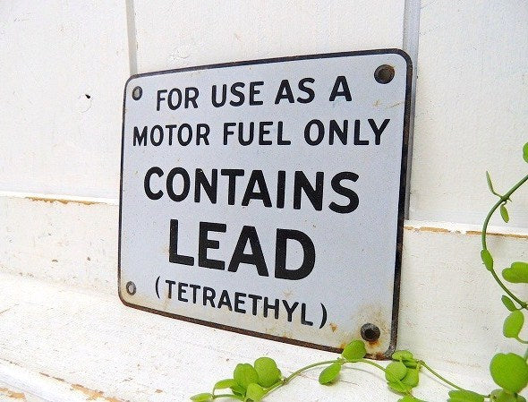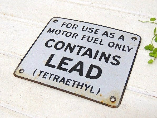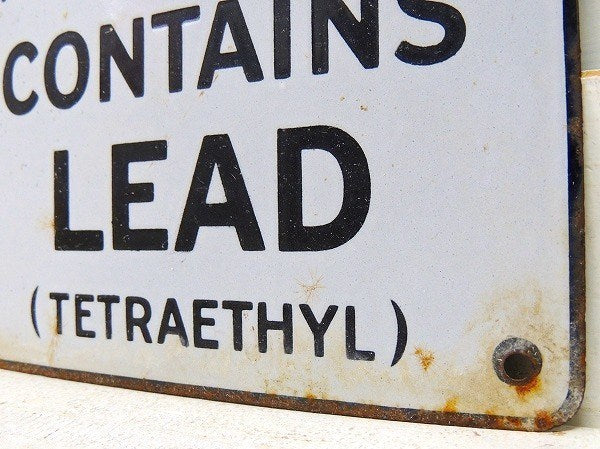 USA ガソリンスタンド CONTAINS LEAD アメリカンビンテージ ・ホーローサイン 看板 USA ガレージ雑貨 モーター系