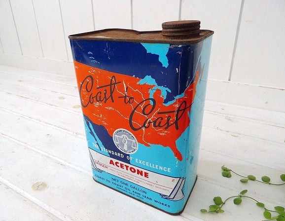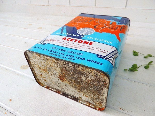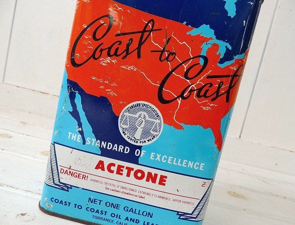 アメリカ西海岸カリフォルニア、ベンチュラで見つけてきました『COAST TO COAST OIL AND LEAD WORKS』のヴィンテージ・アセトン缶です。