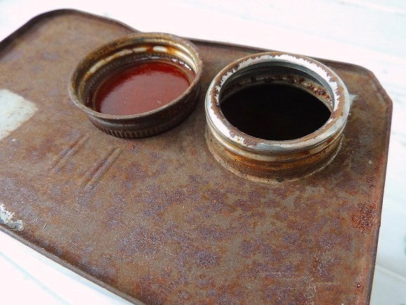アセトンが入っていた、フタ付きの古いオイル缶になります。