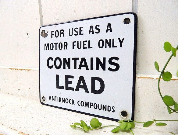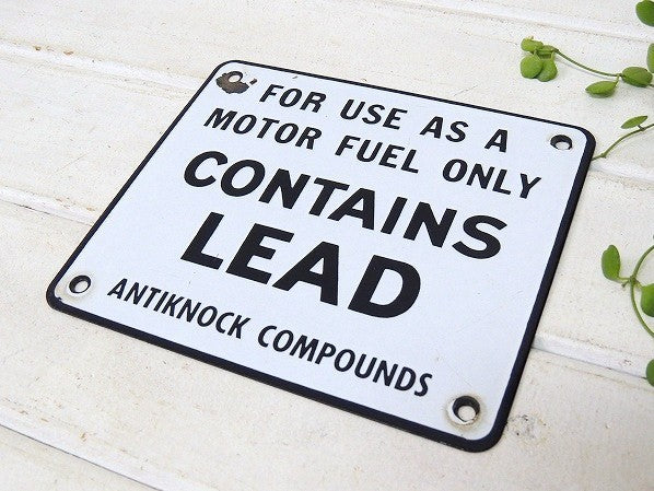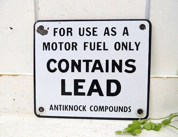 【CONTAINS LEAD】シンプルで可愛い小さなアンティーク・ホーローサイン/看板 USA