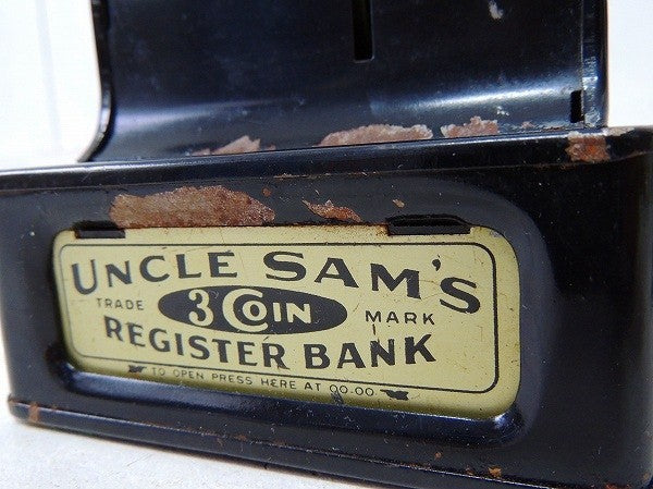 アメリカで見つけました・・『UNCLE SAM'S REGISTER BANK』ブリキ製・ヴィンテージ・コインバンク(貯金箱)です。